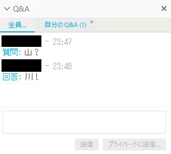 • Q&A allows participants ask questions to panelists, presenters and organizers. Answered questions can be seen on the other participants’ screen. Those who have just entered the session can read all Q&As.