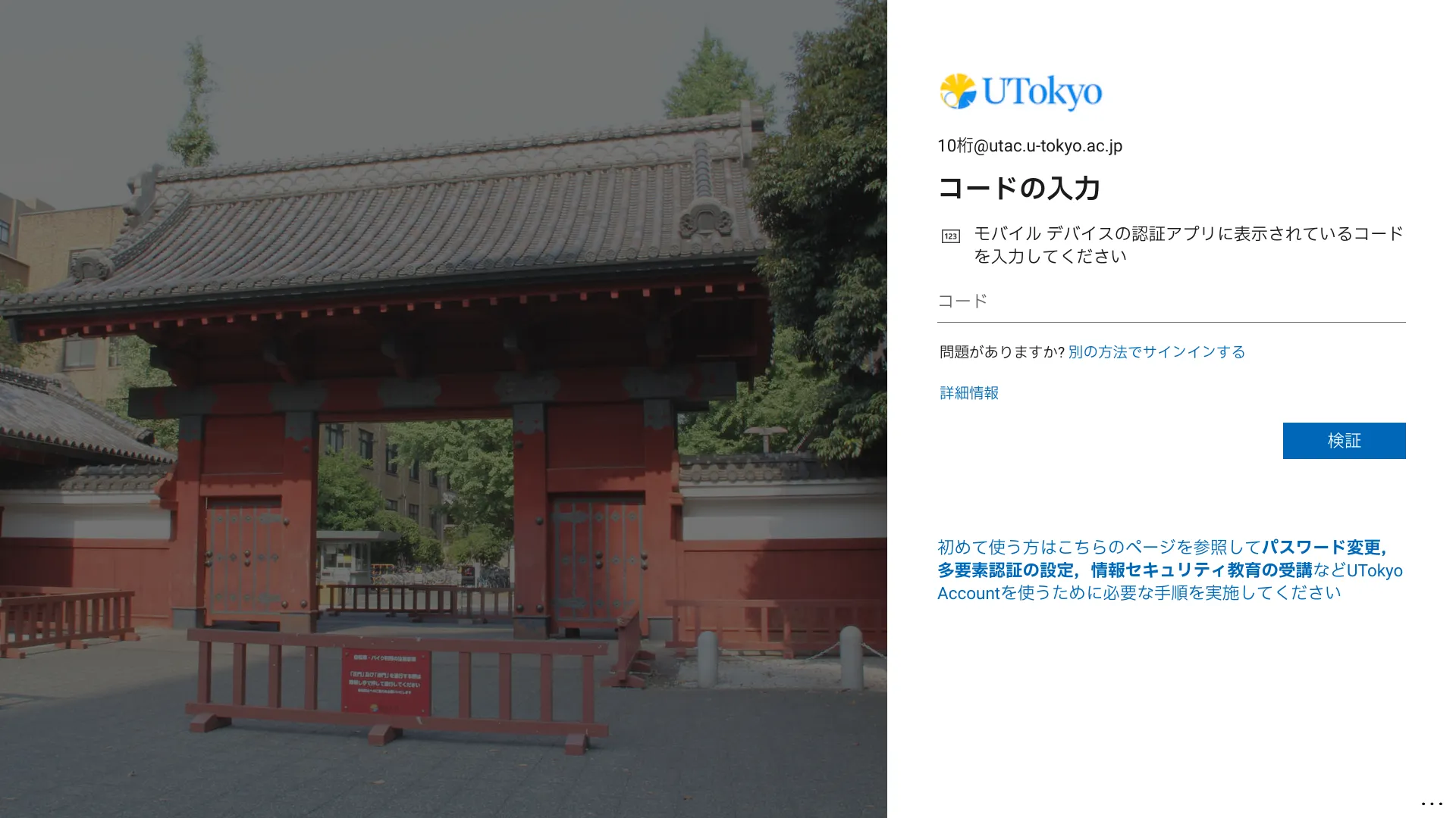 登録した本人確認方法を使ってUTokyo Accountにサインインできるようになります.